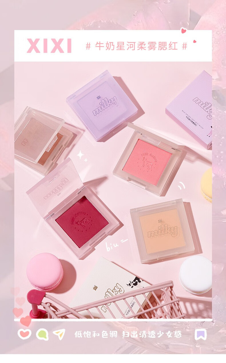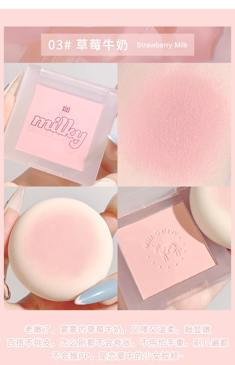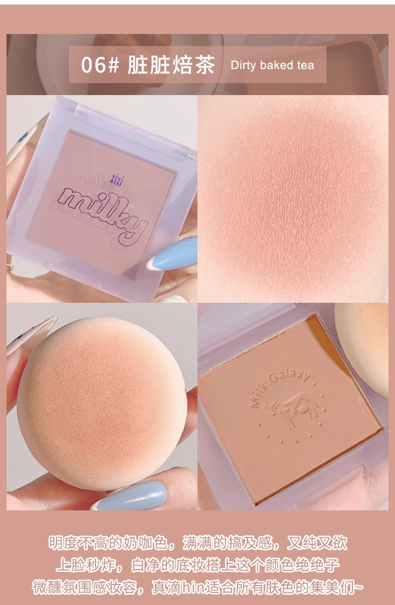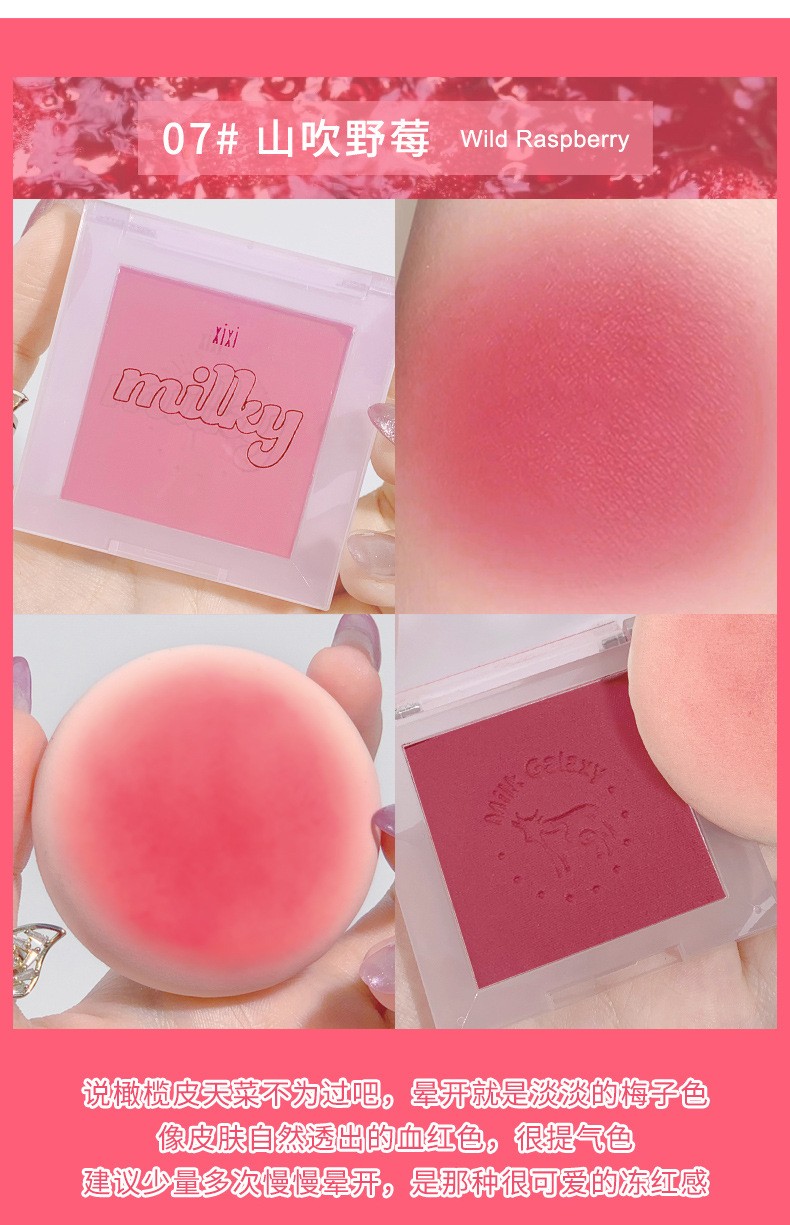 xixi腮红牛奶星河柔雾腮红新手小巧便携自然裸妆哑光豆沙奶茶学生平价7#山吹野莓